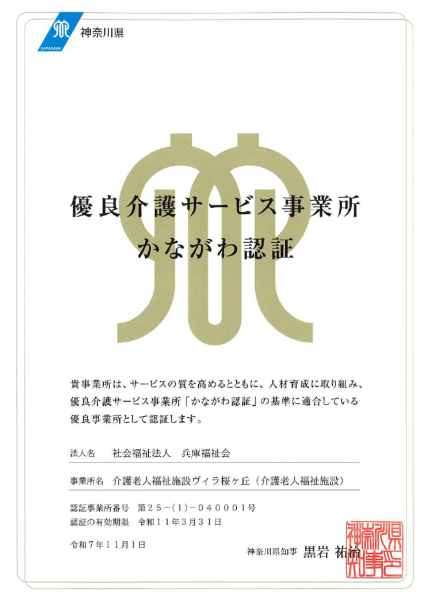 「かながわ認証」とは、神奈川県内の優良な介護事業所を神奈川県が認証する制度です。